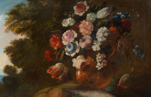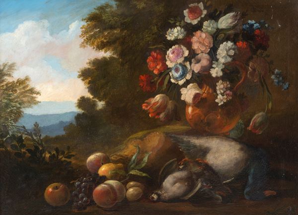 Dipinto olio su tela raffigurante "NATURA MORTA". XIX secolo. In cornice.