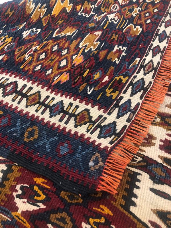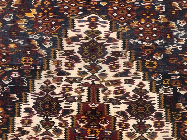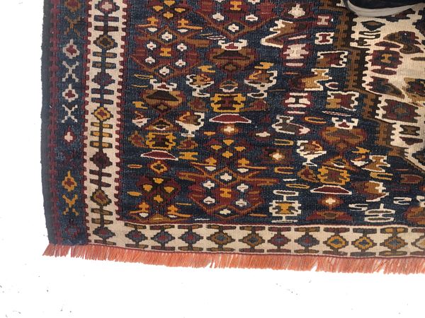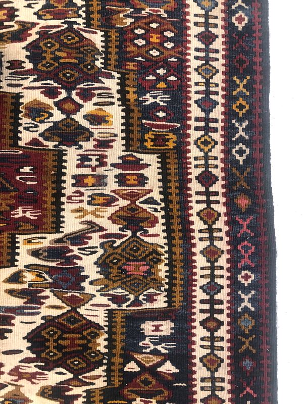 Kilim Sirjan. Persia. Inizi XX secolo. Ottimo stato di conservazione, mancanze nelle testate.