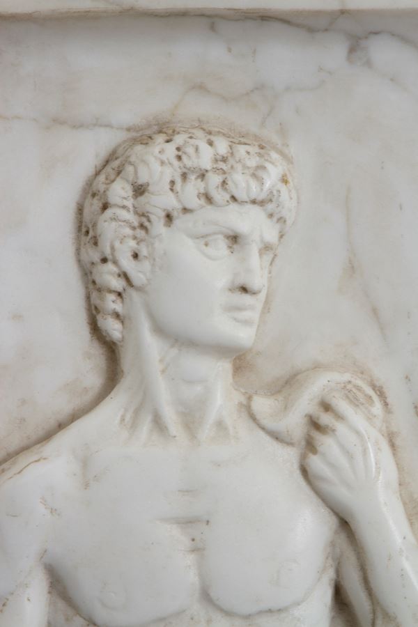 Lastra in marmo scolpita a bassorilievo raffigurante "DAVID". Fine XIX secolo.