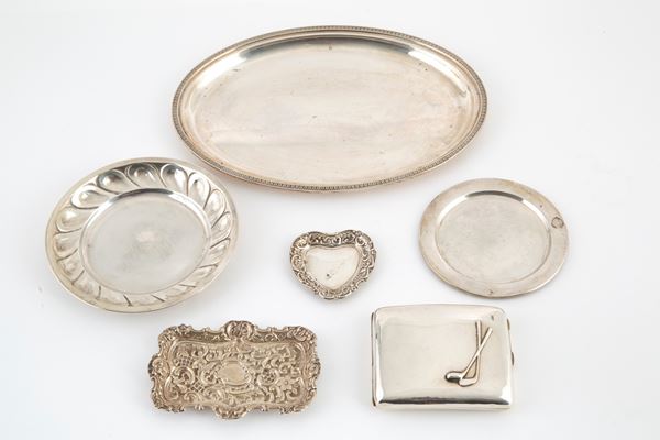 Lotto composto da undici pezzi in argento, gr. 2000 ca. complessivi.