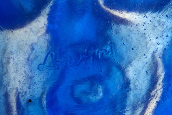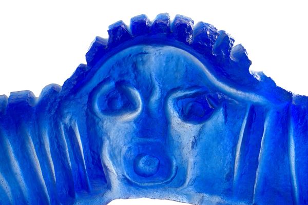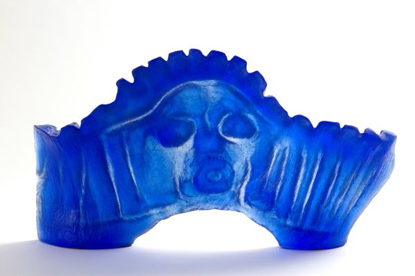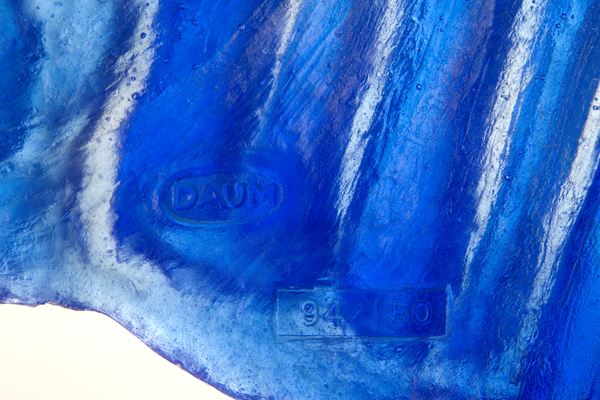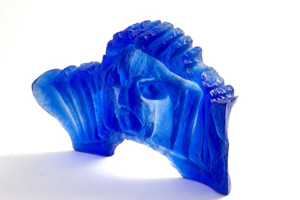Scultura in pasta di vetro blu cobalto intitolata "ECLATEMENT". Firmata sul retro. Esemplare 94/150. Manifattura DAUM. Con certificato di autenticità.