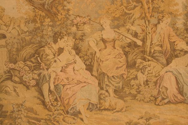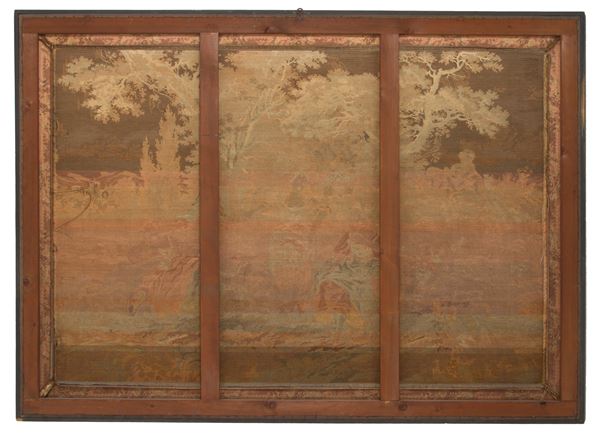 Succo d'erba raffigurante "SCENA BUCOLICA". XX secolo. In cornice dorata.
