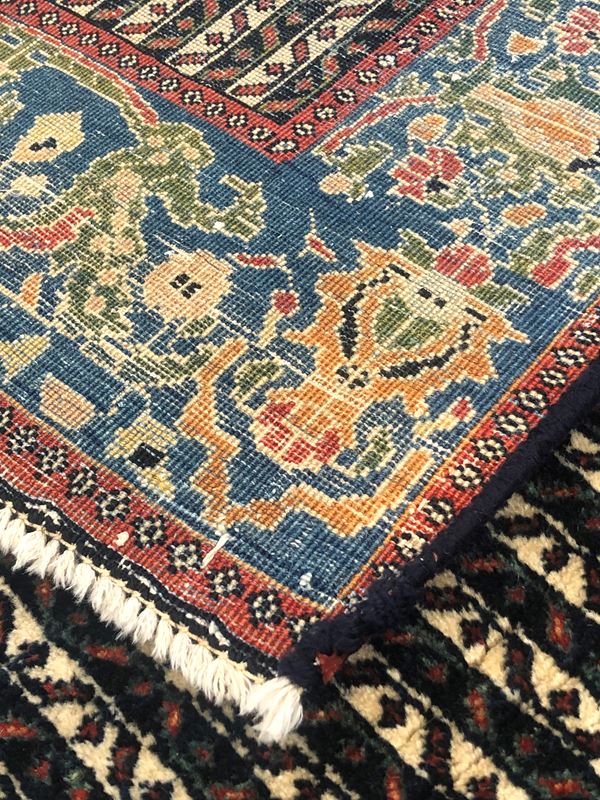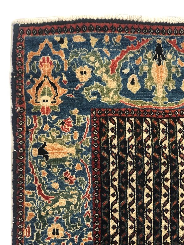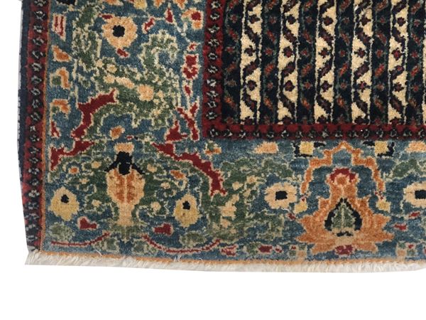 Tappeto Afshar. Persia. XIX secolo. Perfetto stato di conservazione, campo in vello, senza restauri sul campo, mancanza di una bordura in una testata.