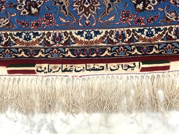 Tappeto Isfahan trama e ordito in seta. Persia. Firmato Ghafarian. Seconda metà del XIX secolo. Perfetto stato di conservazione.