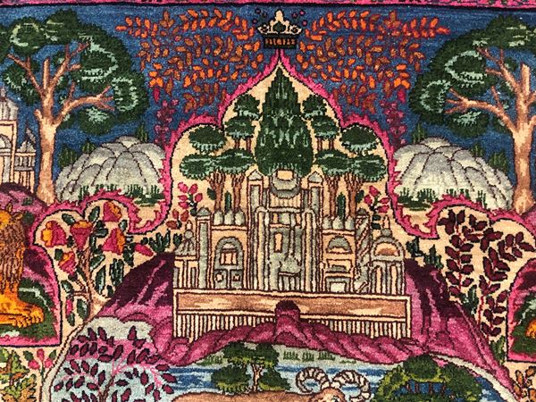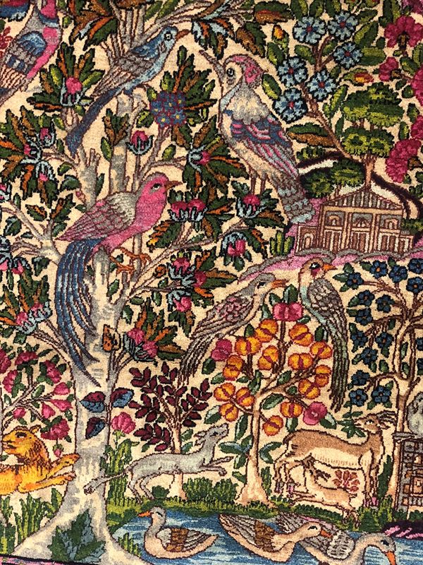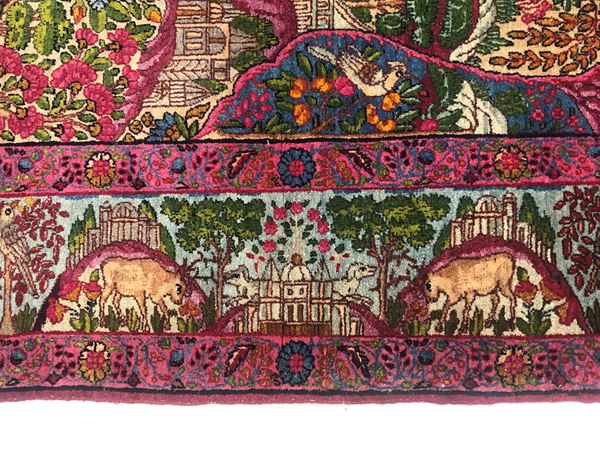 Tappeto Kirman disegno albero della vita. Persia. Circa 1900. Perfetto stato di conservazione, senza restauri o aree consumate, quattro lati originali.