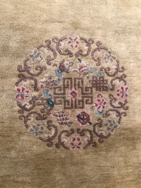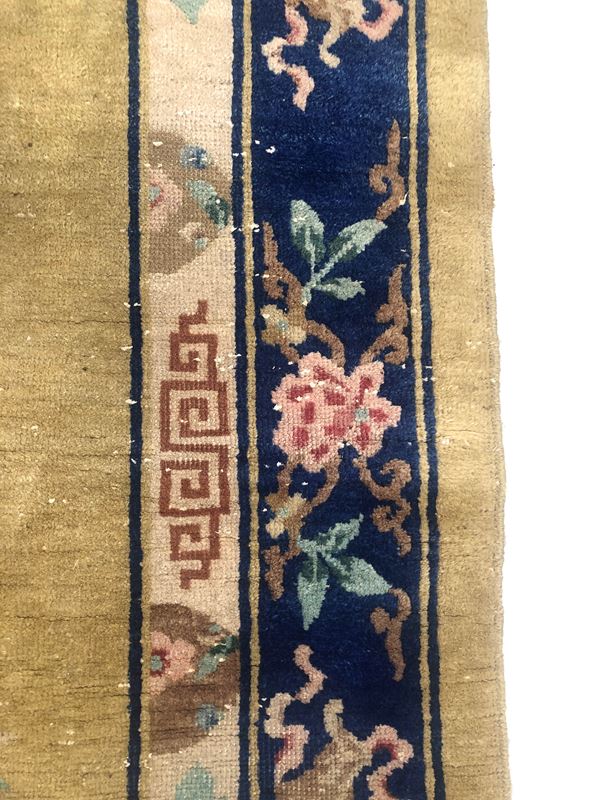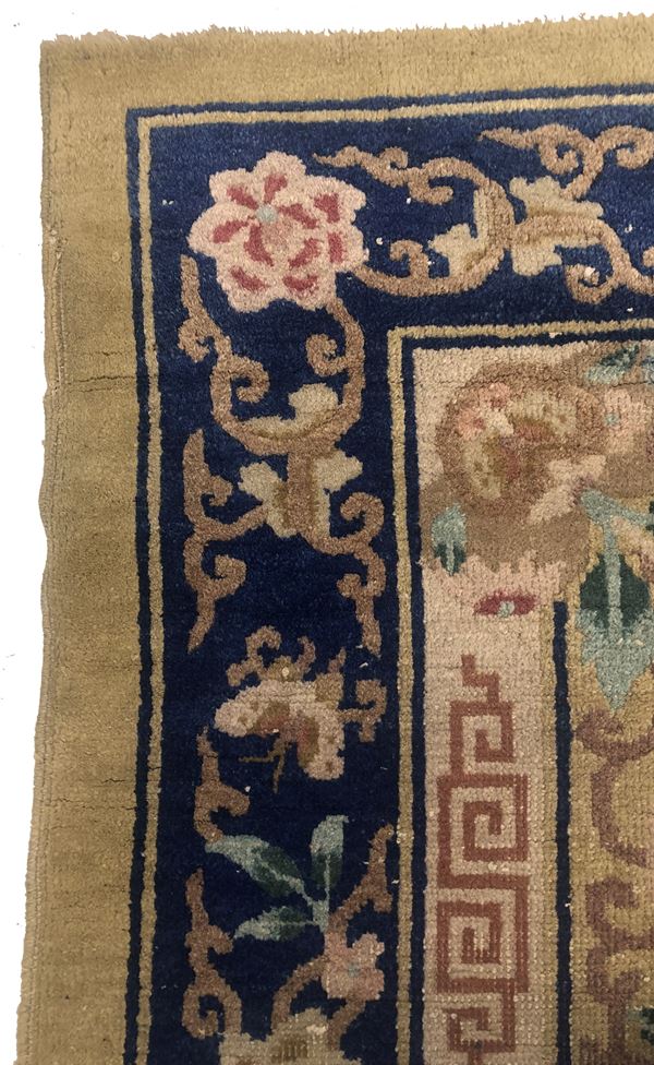 Tappeto Pekino. Cina. Prima metà del XX secolo. Perfetto stato di conservazione, campo in vello e quattro lati originali.