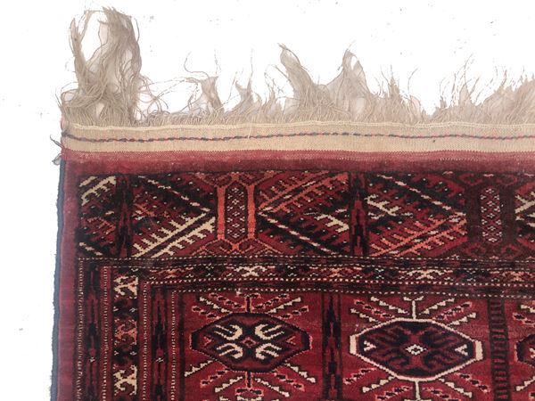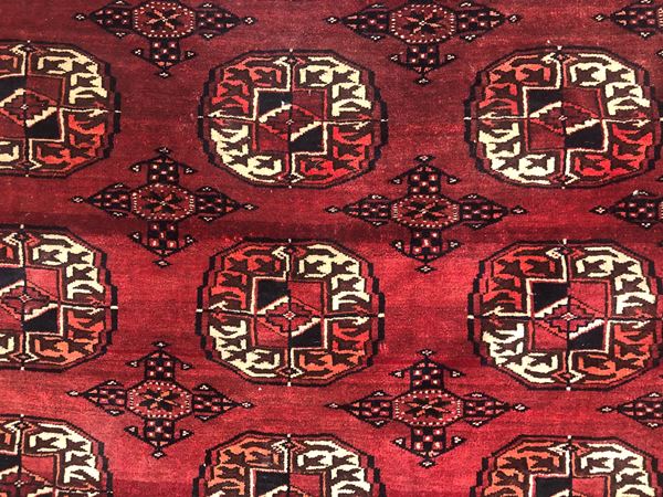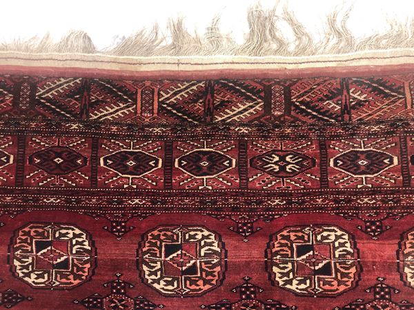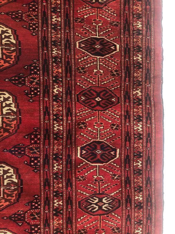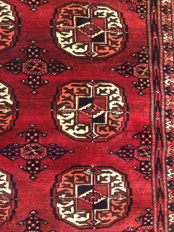 Tappeto Tekkè. Turcomanno. Inizi XX secolo. Eccellente stato di conservazione, quattro lati originali.