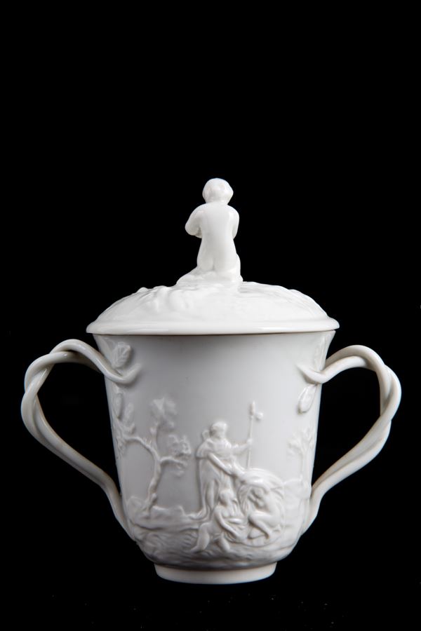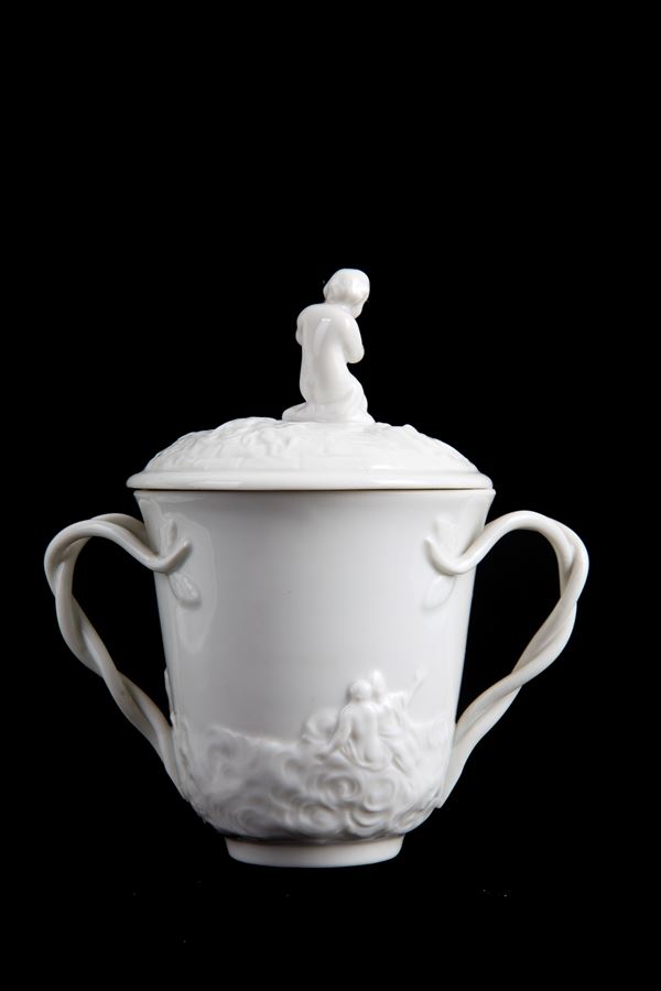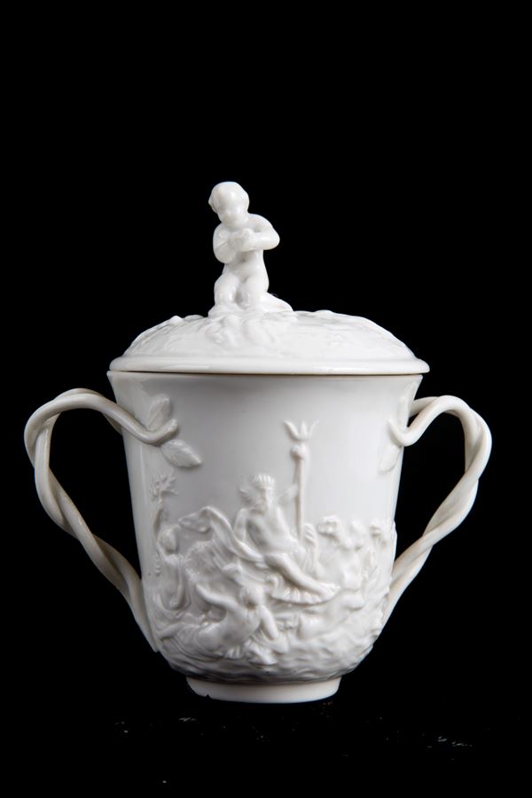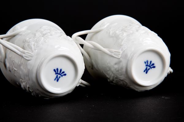 Coppia di tazzine da puerpera in porcellana bianca. Manifattura CAPODIMONTE. Marcate sul fondo. Fine XIX secolo.