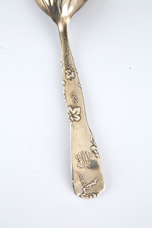 Cucchiaio da servizio in argento sterling. Manifattura TIFFANY. Marcato sul retro.