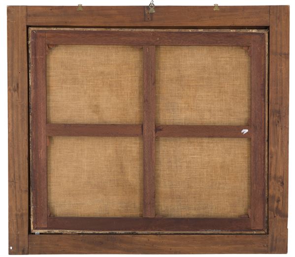 Dipinto olio su tela raffigurante "NATURA MORTA". XVII secolo. In cornice in legno non coeva. Restauri. Già rintelato e rintelaiato.