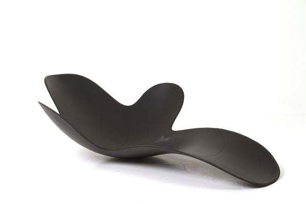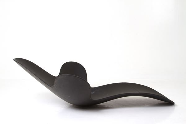 Chaise longue Lazy Mary con struttura in fibra di vetro e rivestimento in cuoio nero. Produzione DISGUINCIO. Anni '90. Difetti e segni di usura.
