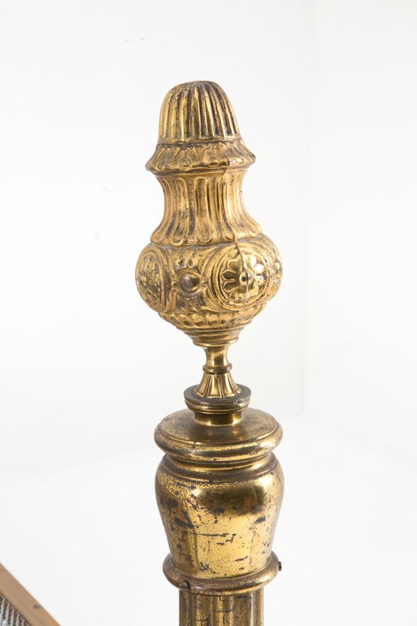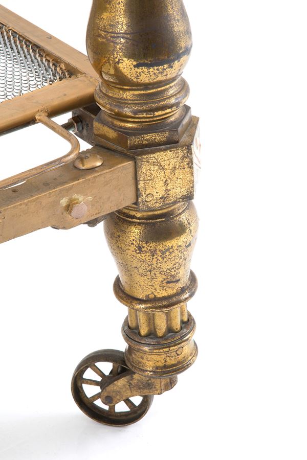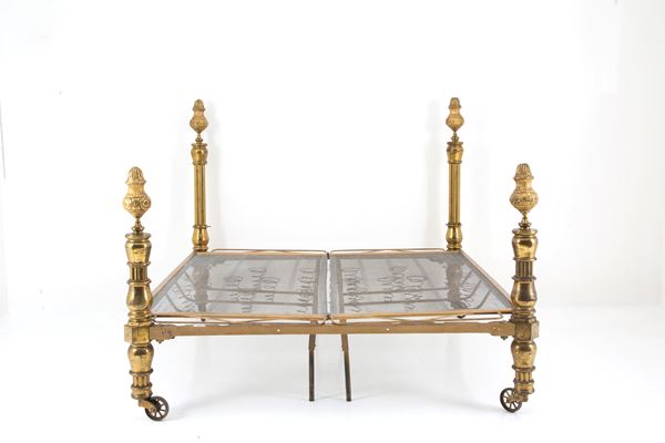Letto in bronzo con pinnacoli in lamierino dorato. XIX secolo.
