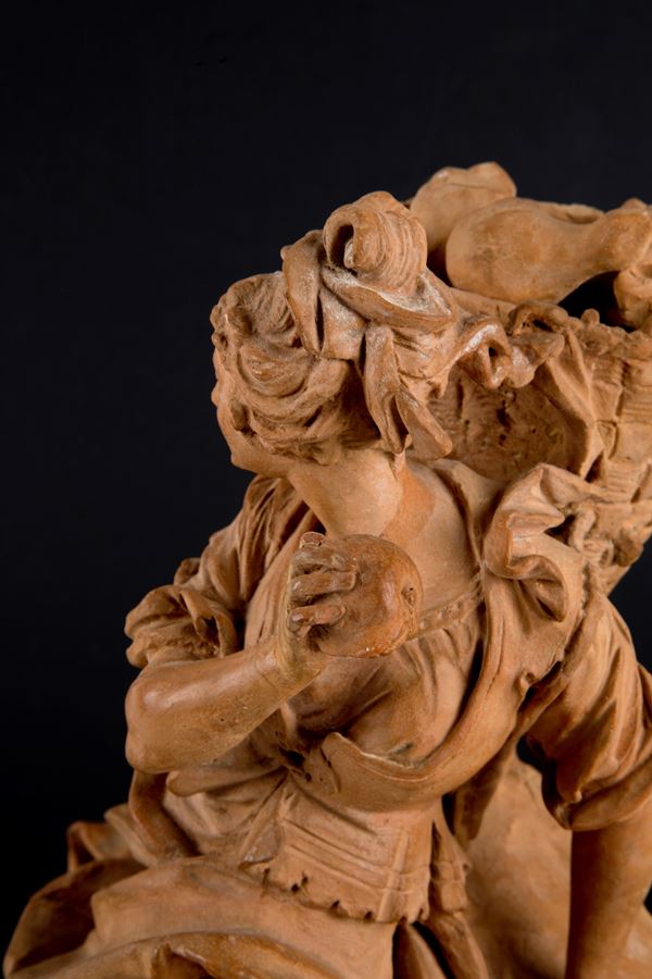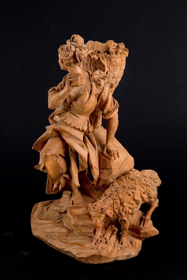 Scultura in terracotta raffigurante "PASTORELLA". Lievi difetti.