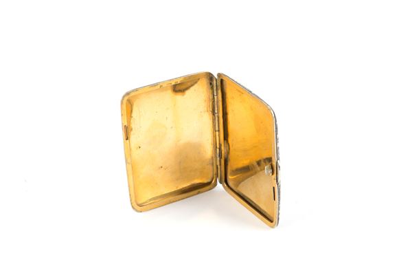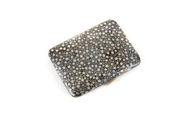 Portabiglietti in metallo argentato e niello. Con punzoni all'interno. XIX secolo.