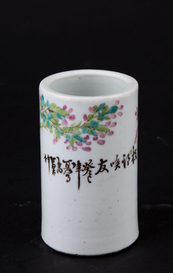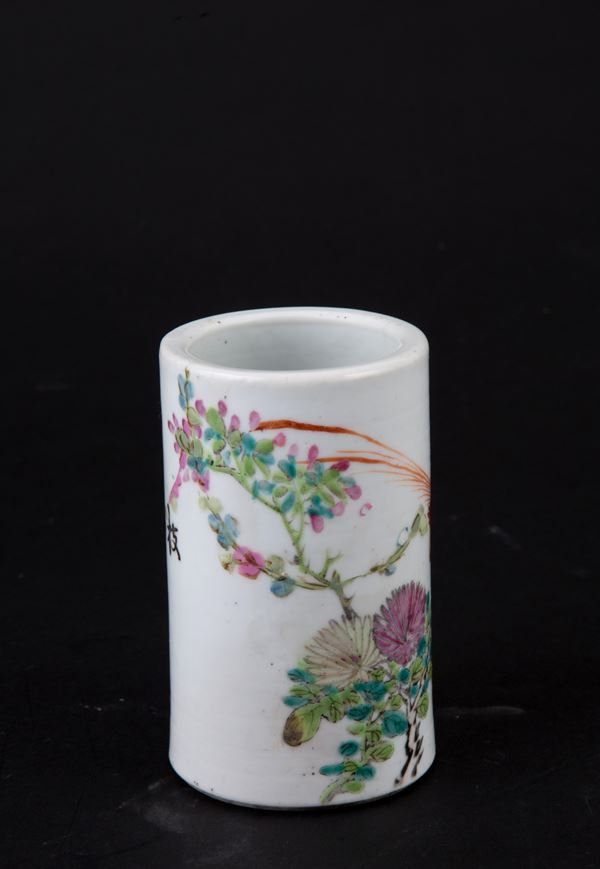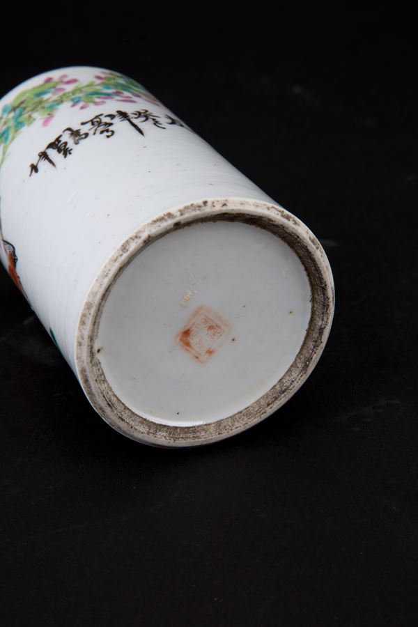 Portapennelli in porcellana dipinto. Marcato sul fondo. Cina. XVIII secolo.