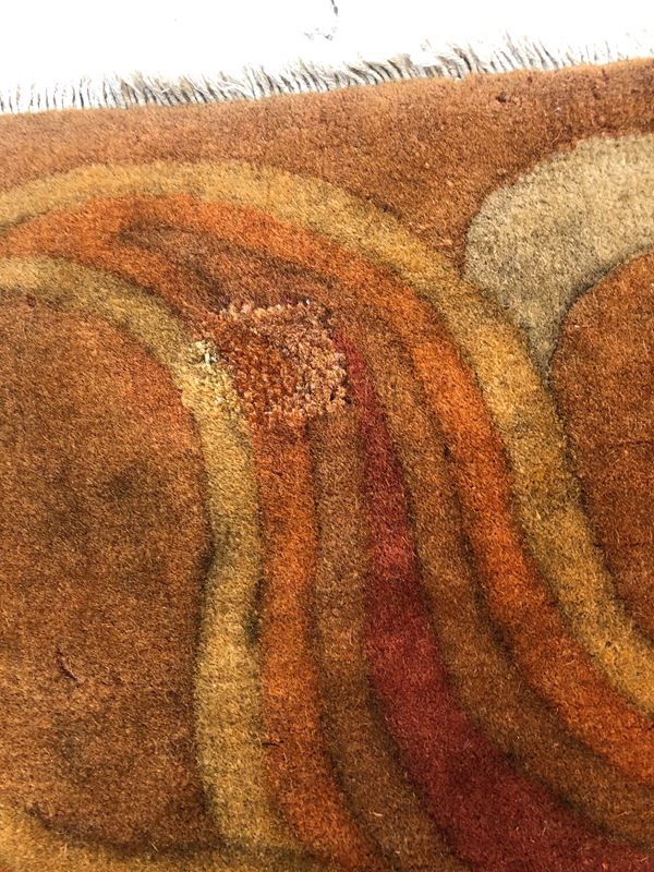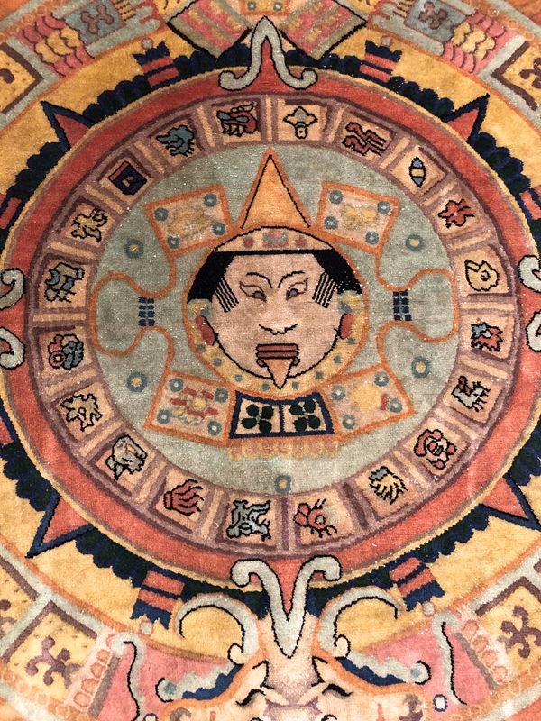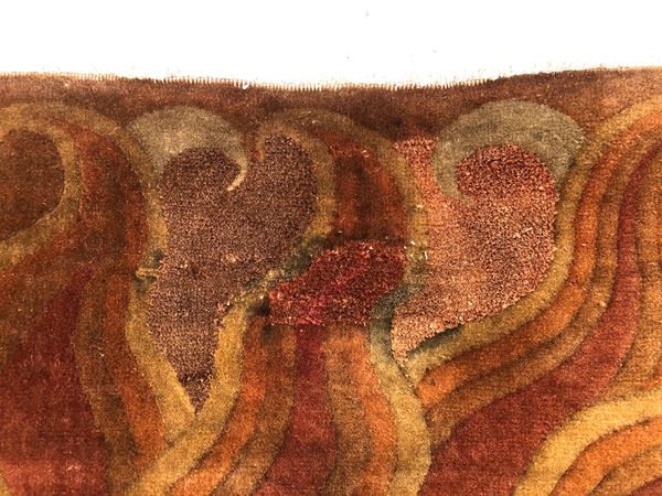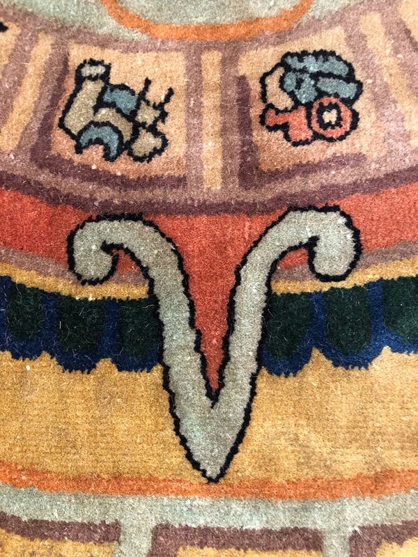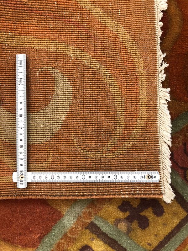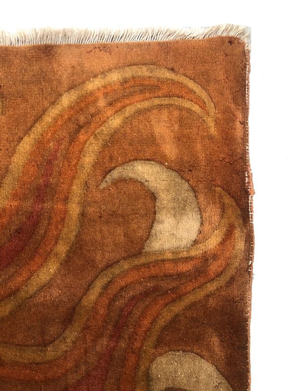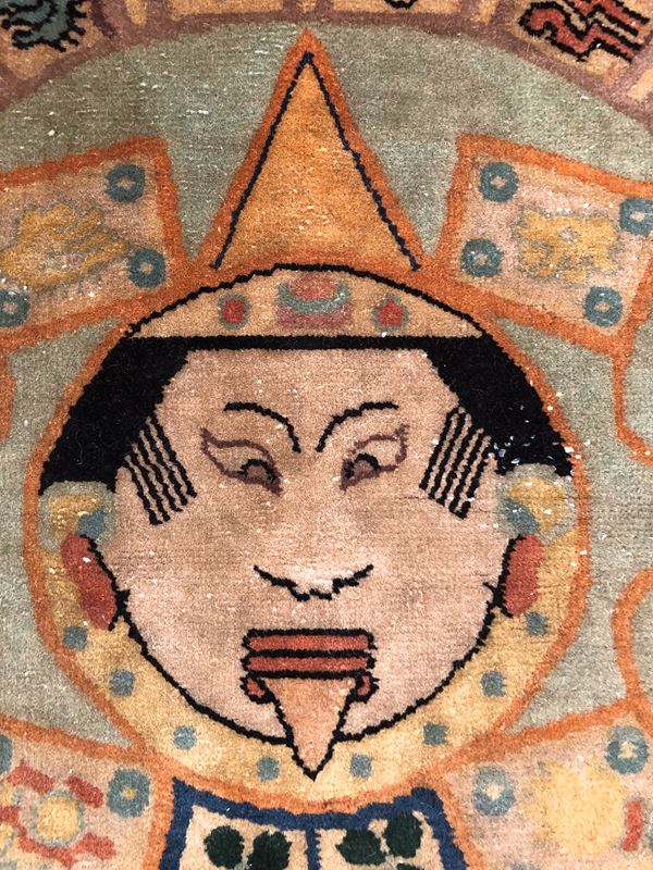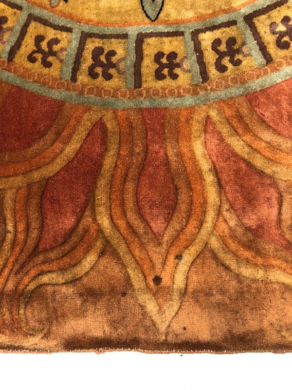 Raro tappeto Nichols. Cina. Prima metà del XX secolo. Campo in vello, quattro lati originali, piccolo restauro sul campo, da lavare.