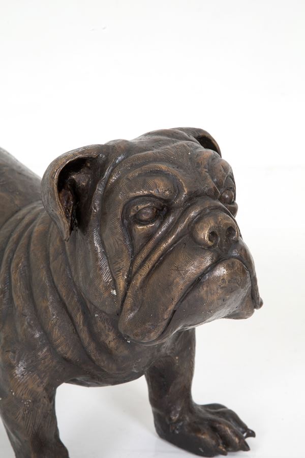 Scultura in bronzo patinato raffigurante "BULLDOG". Fine XX secolo.