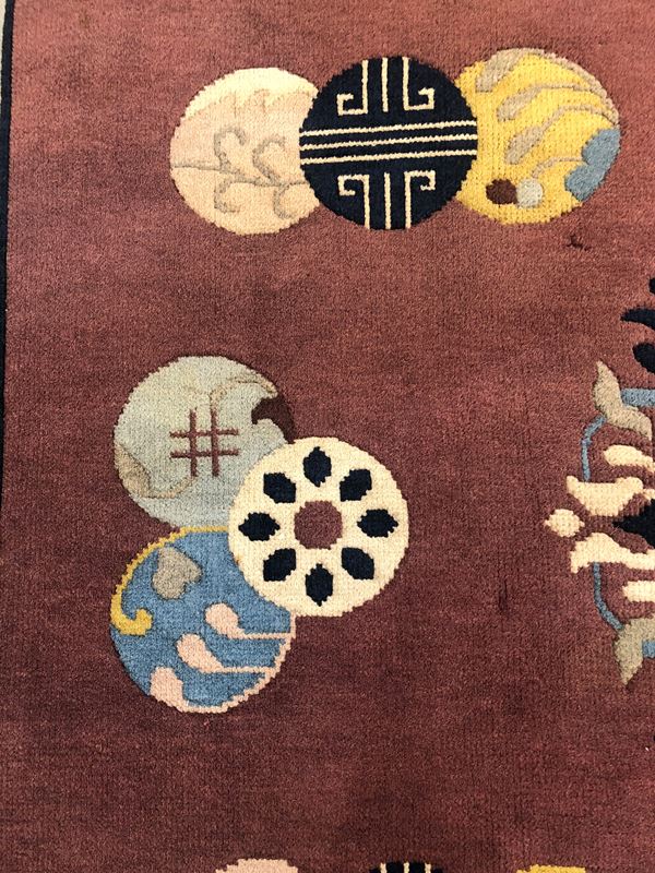 Tappeto Pekino. Cina. Inizi XX secolo. Eccellente stato di conservazione, senza restauri o aree consumate.