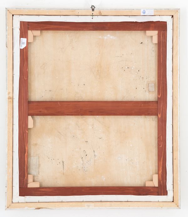 Dipinto olio su tela raffigurante "AUTORITRATTO". In cornice in legno laccato. Difetti e restauri. Già rintelato e rintelaiato.