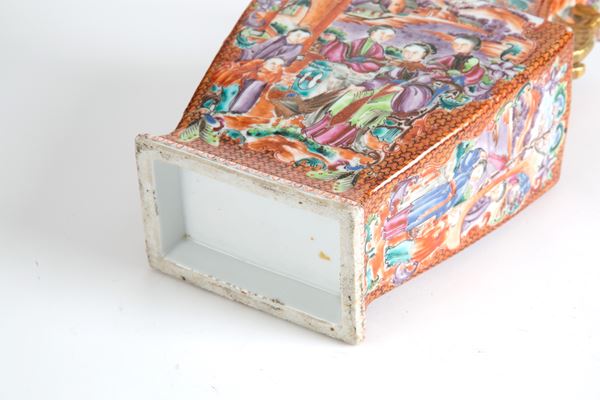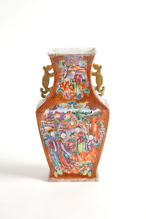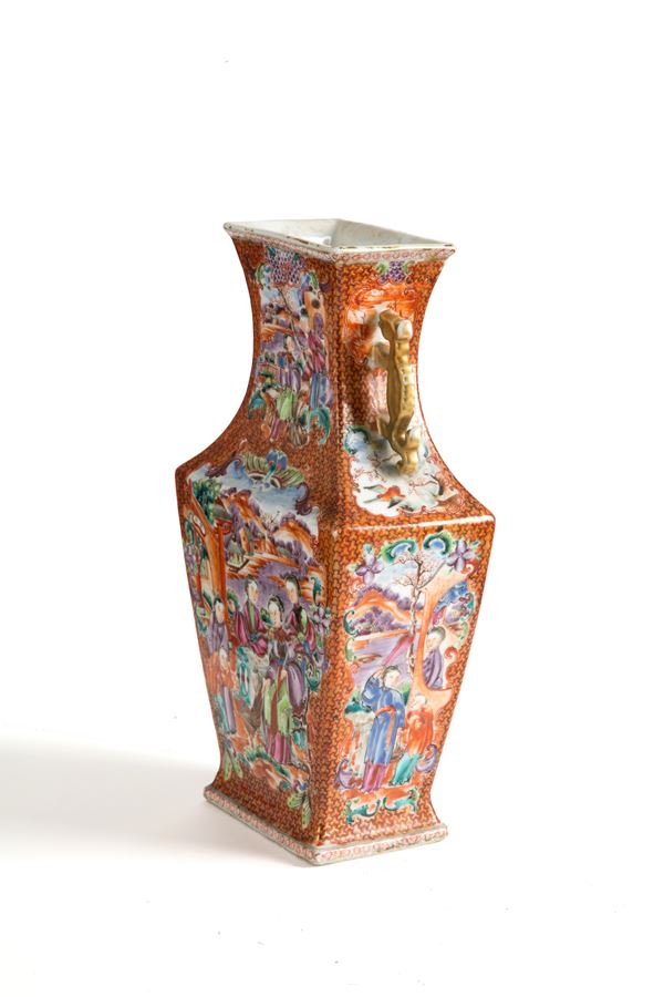 Vaso in porcellana Compagnia delle Indie dipinto con scene di vita orientale. Cina. Periodo Qianlong.