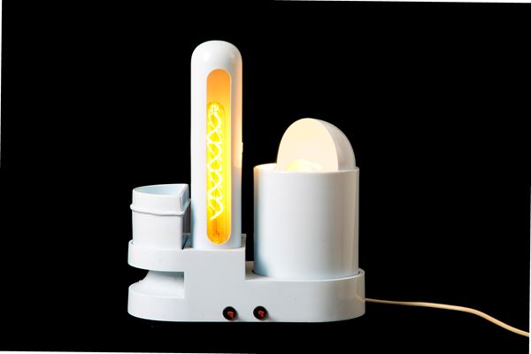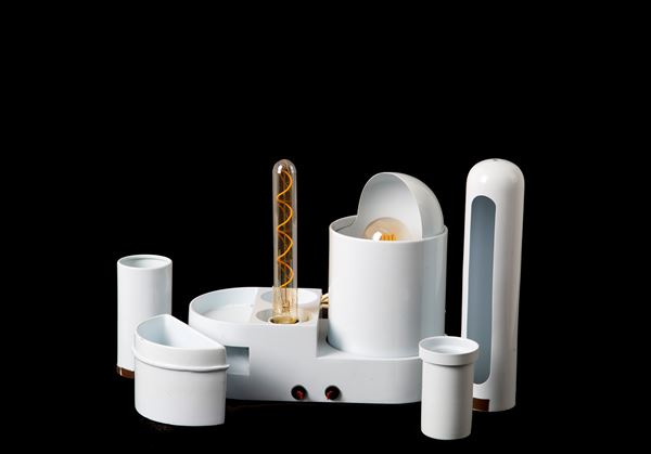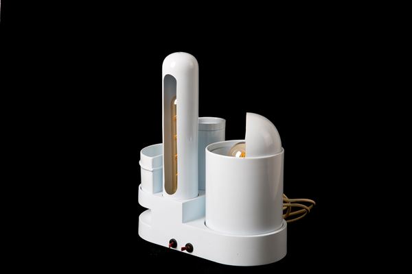 Lampada da tavolo multiuso modello Rimorchiatore in metallo verniciato bianco. Produzione CANDLE. 1968. Segni di usura del tempo.