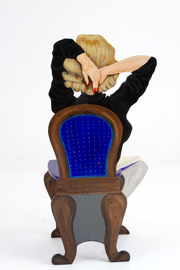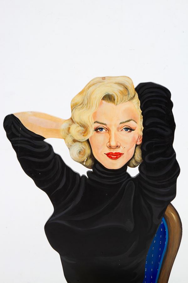 Sedia in legno dipinto raffigurante "MARILYN MONROE". Firmata e datata '94 sul retro. Lievi segni di usura del tempo.