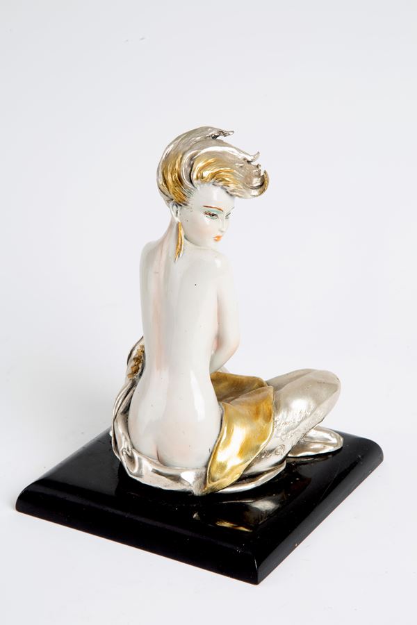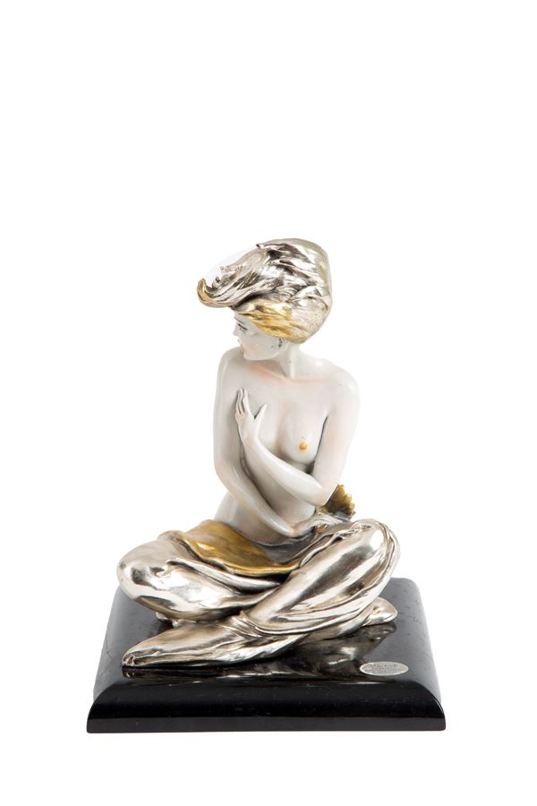 Scultura in argento porcellanato "FIGURA FEMMINILE SEDUTA"