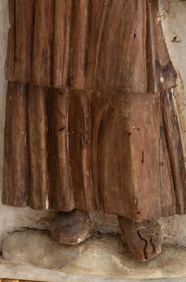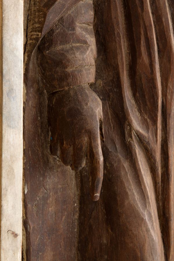Coppia di altorilievi in legno laccato e dorato raffiguranti "SANTI". Inizi XVIII secolo. In cornici intagliate e dorate.