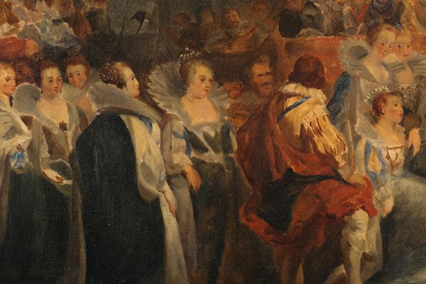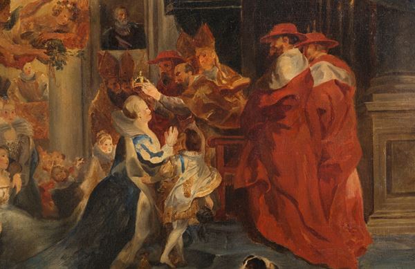 Dipinto olio su tela raffigurante "INCORONAZIONE DI MARIA DEI MEDICI". XIX secolo.