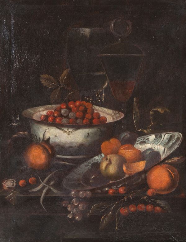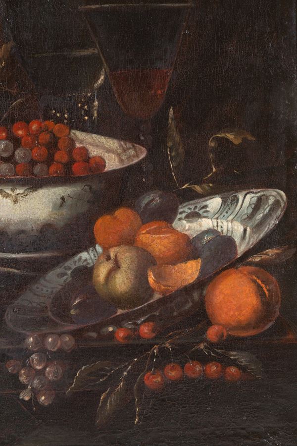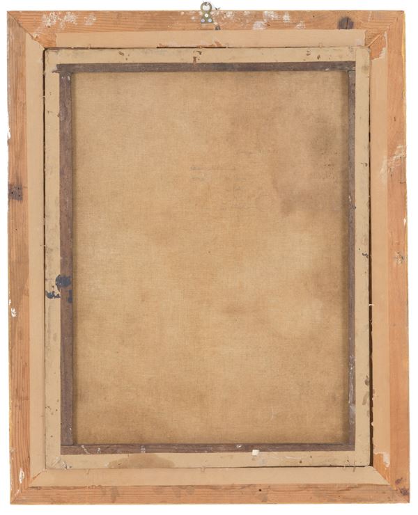 Dipinto olio su tela raffigurante "NATURA MORTA". XIX secolo. In cornice in legno dorato. Già rintelato e rintelaiato.