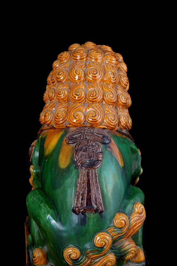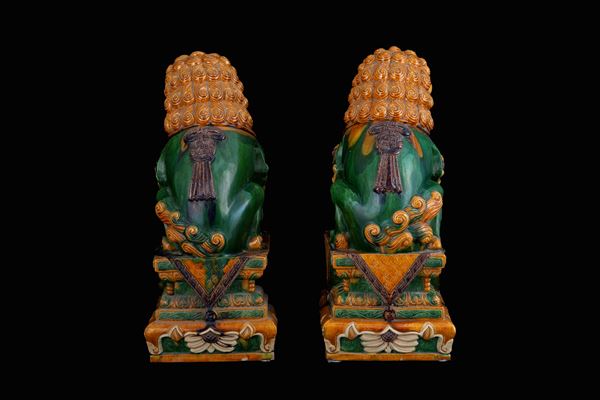 Due sculture in terracotta invetriata raffiguranti "CANI DI FO". Cina.