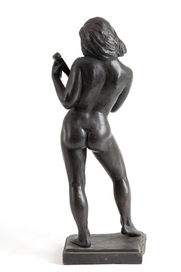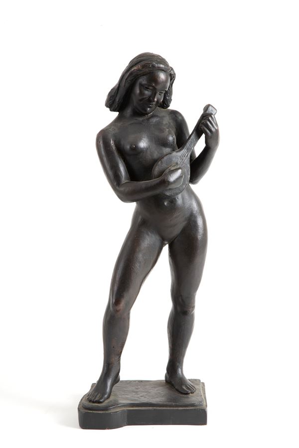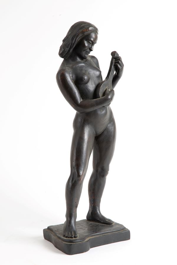 Scultura in bronzo raffigurante "NUDO DI DONNA CHE SUONA IL MANDOLINO". Firmata alla base.