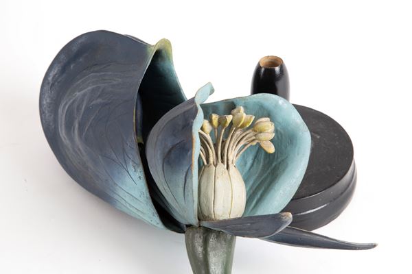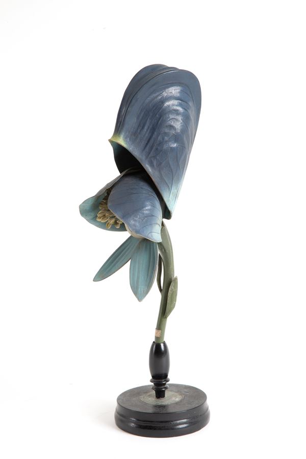 Fiore aconito didattico in legno e cartapesta. Manifattura BRENDEL. Fine XIX secolo. Lievi difetti.