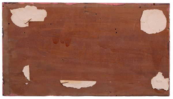 Dipinto olio su tavoletta raffigurante "PAESAGGIO COLLINARE". Con doppia firma in basso a destra e in basso a sinistra. Difetti e tarlatura.