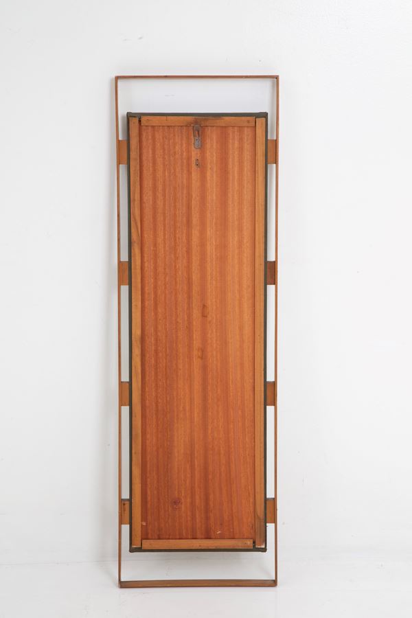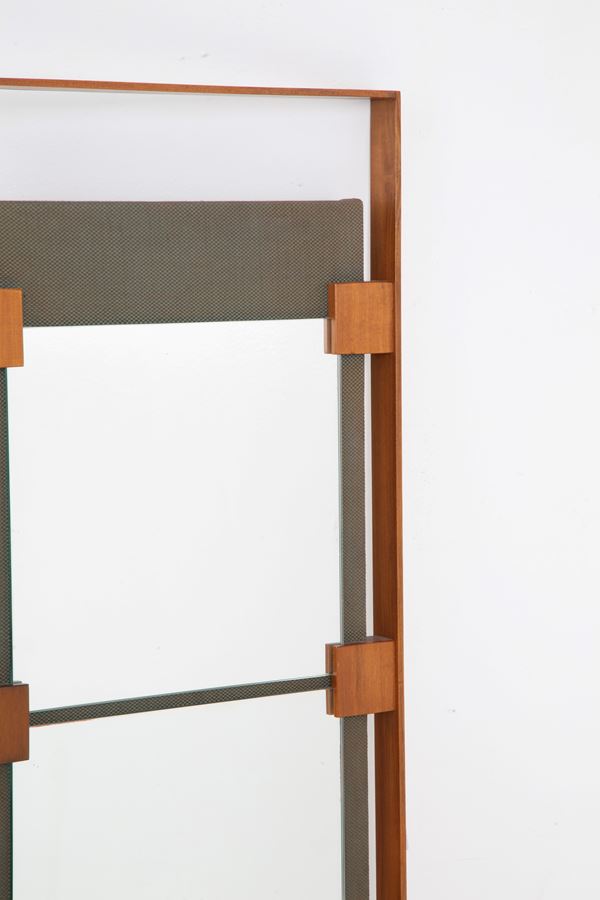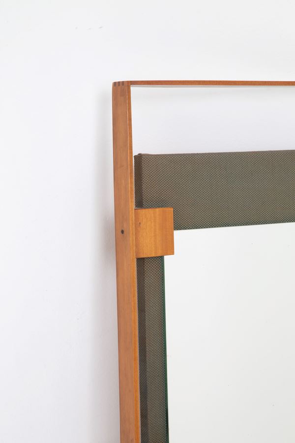 Specchiera a tre comparti in legno e stoffa. Produzione STILDOMUS?. Anni '60.