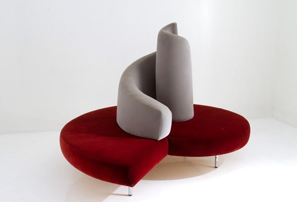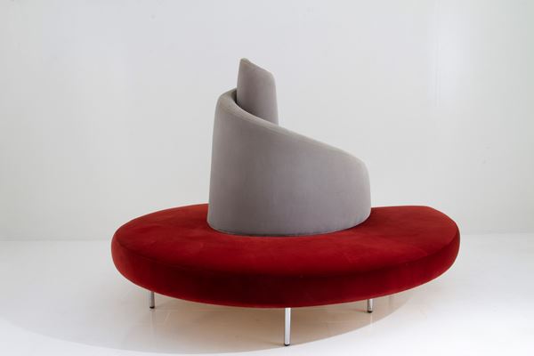 Divano Tatlin in acciaio e rivestimento in vellutino. Produzione EDRA. Anni '80.
