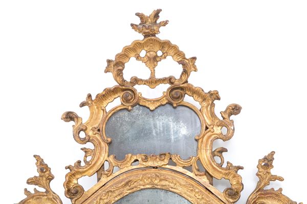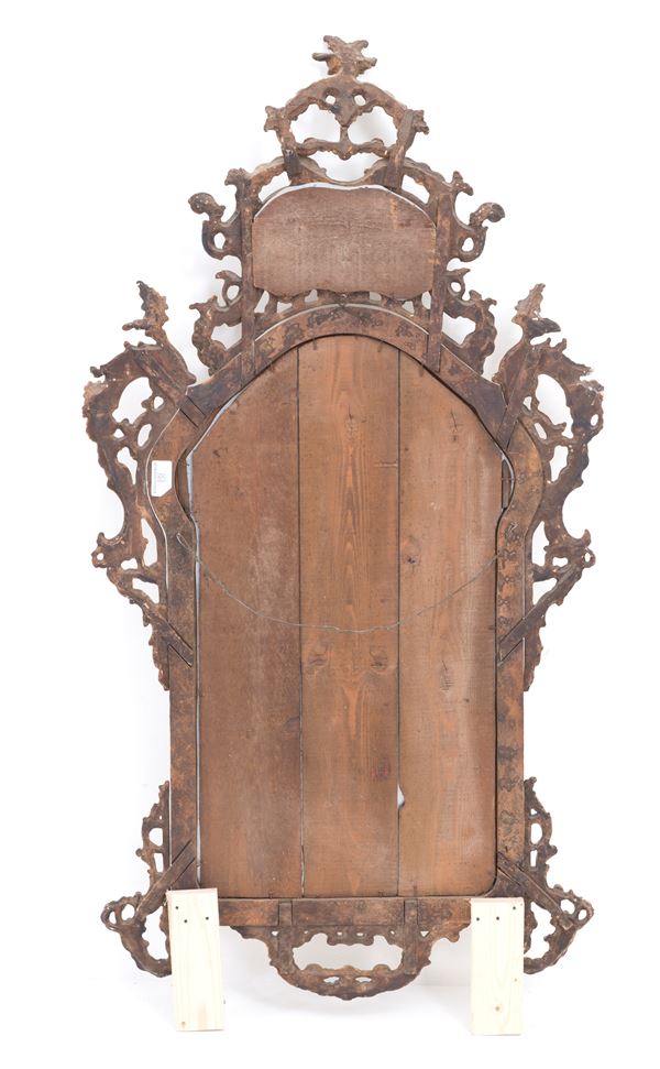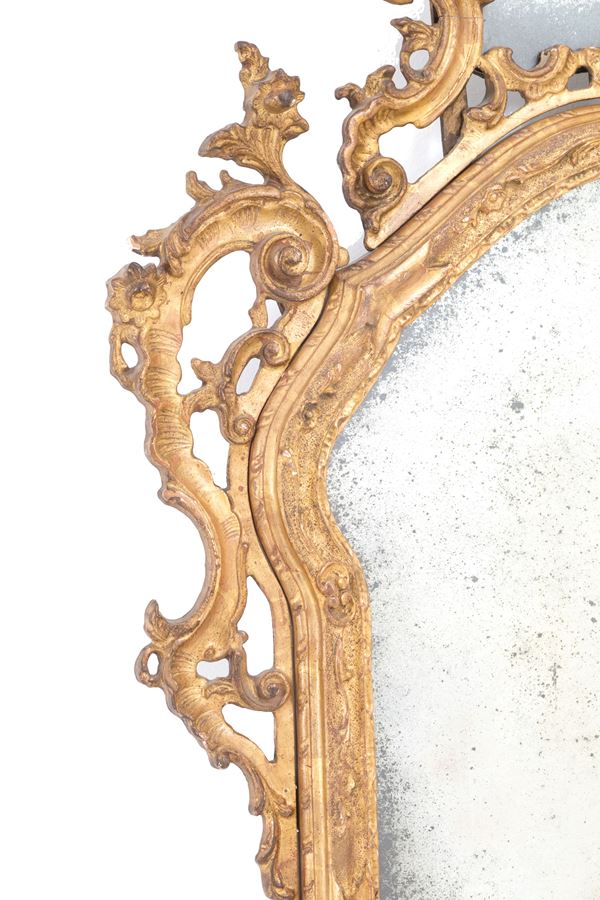 Specchiera in legno finemente intagliato e dorato. Venezia. Fine XVIII-inizi XIX secolo. Lievi difetti.