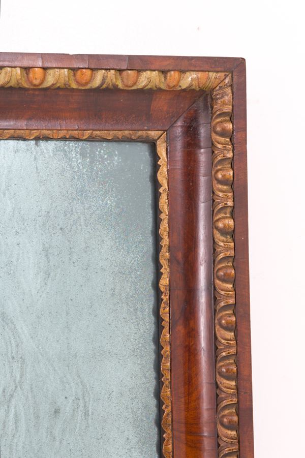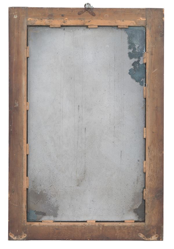 Specchiera in legno con listelli intagliati, laccati e dorati. Periodo Impero. Lievi difetti.