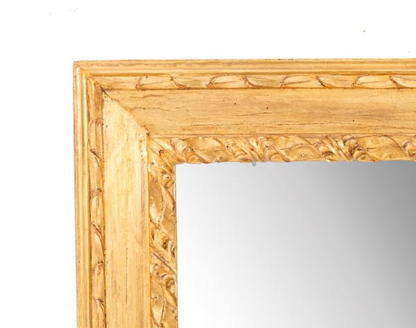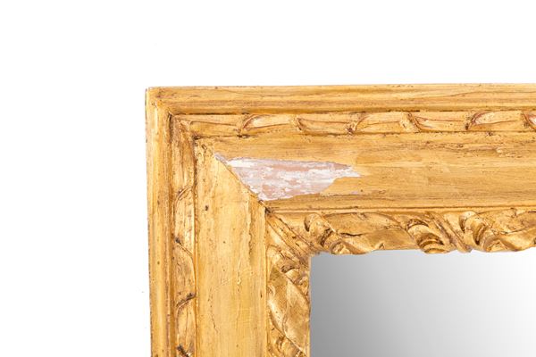 Specchiera rettangolare in legno intagliato e dorato. XIX secolo. Difetti.