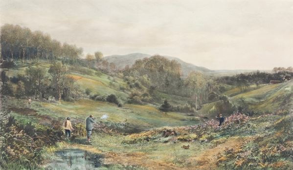 Stampa acquarellata "CACCIA ALLA VOLPE"
