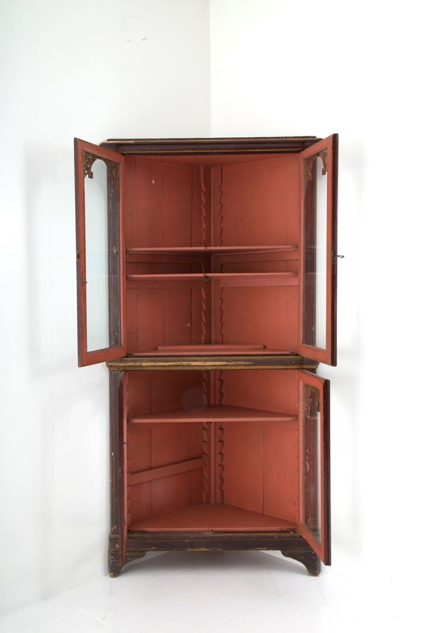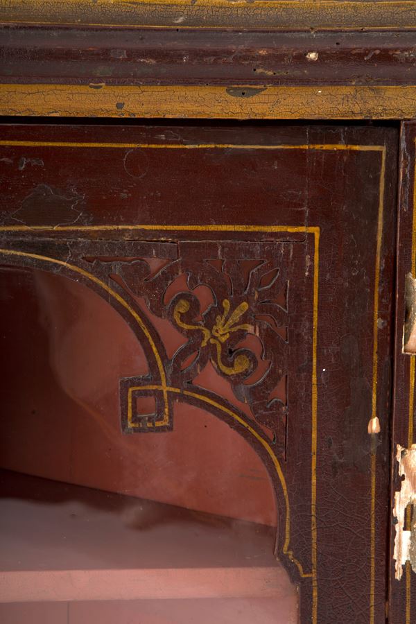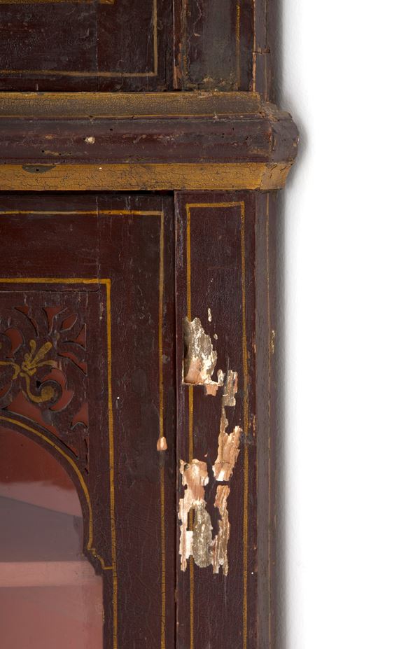 Vetrina angolare in legno laccato. XIX secolo. Difetti.