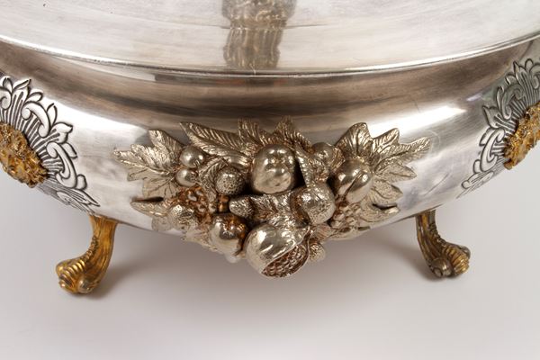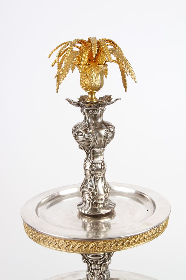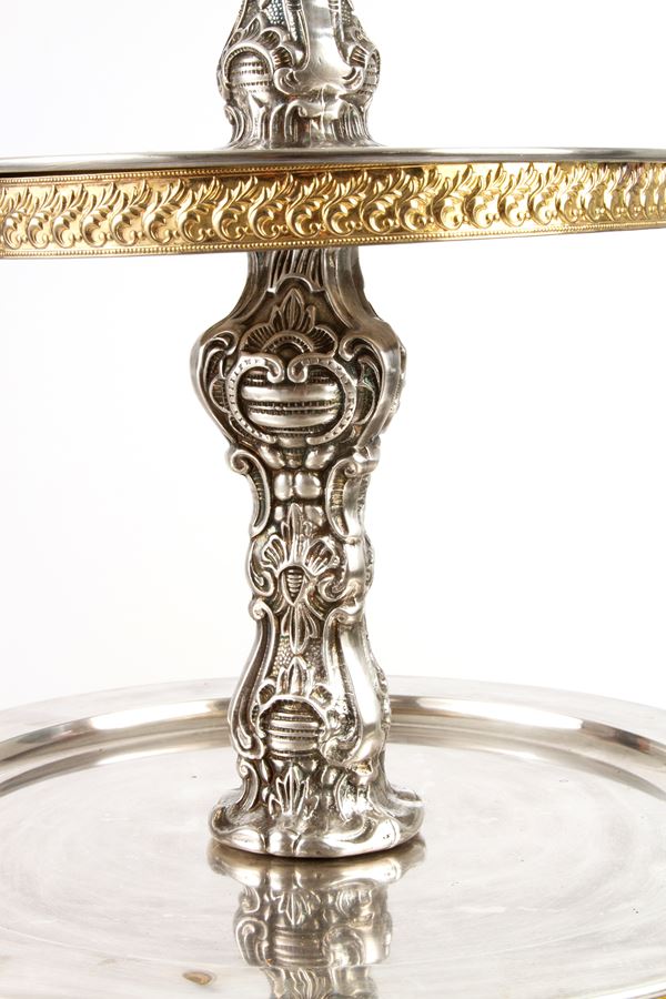Alzata da tavolo in metallo argentato e dorato. Prodotta per CIGA HOTELS. XX secolo. Lievi segni di usura del tempo.