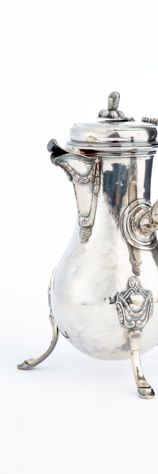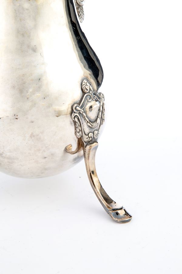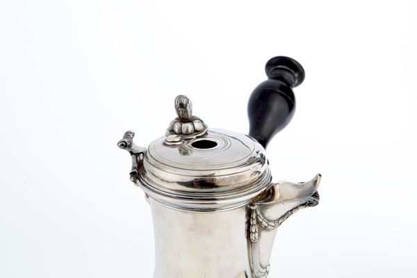 Cioccolatiera in argento con manico in legno, gr. 640 ca. Punzone sul fondo. Francia, Bordeaux. Periodo Luigi XVI. Lievi difetti