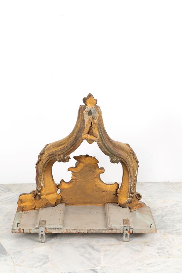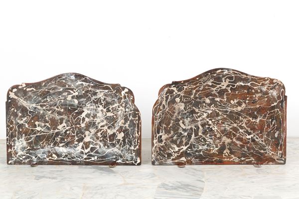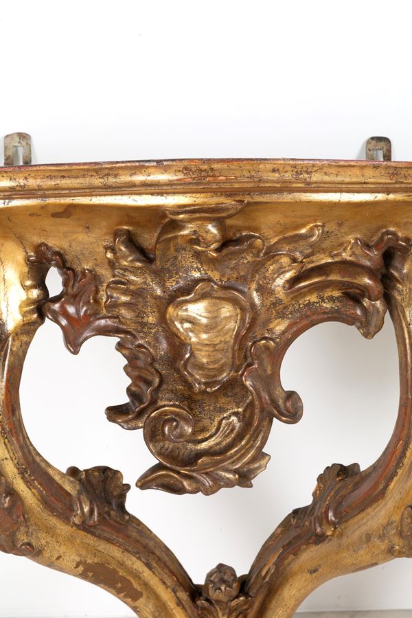 Coppia di consolle in legno intagliato e dorato con piano in finto marmo. Napoli. XVIII secolo. Lievi difetti.