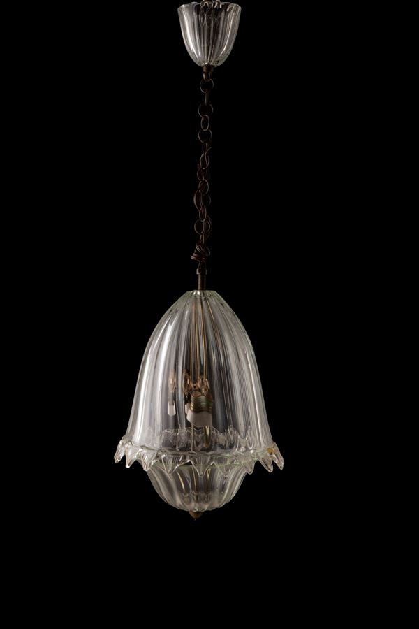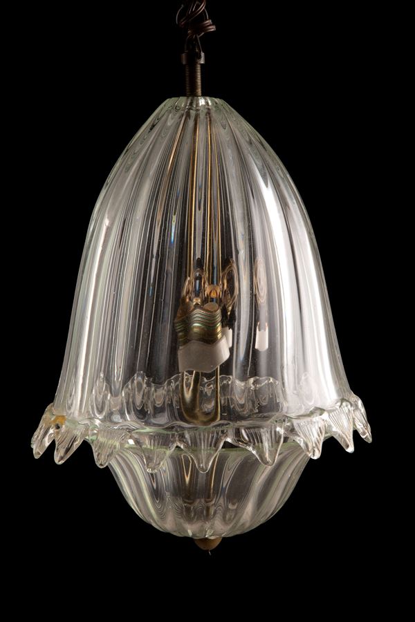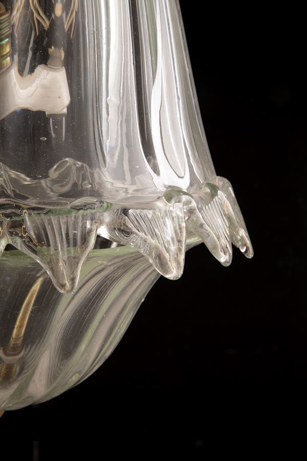 Coppia di fanali in vetro e ottone. XX secolo.