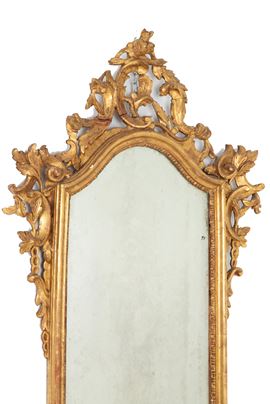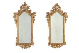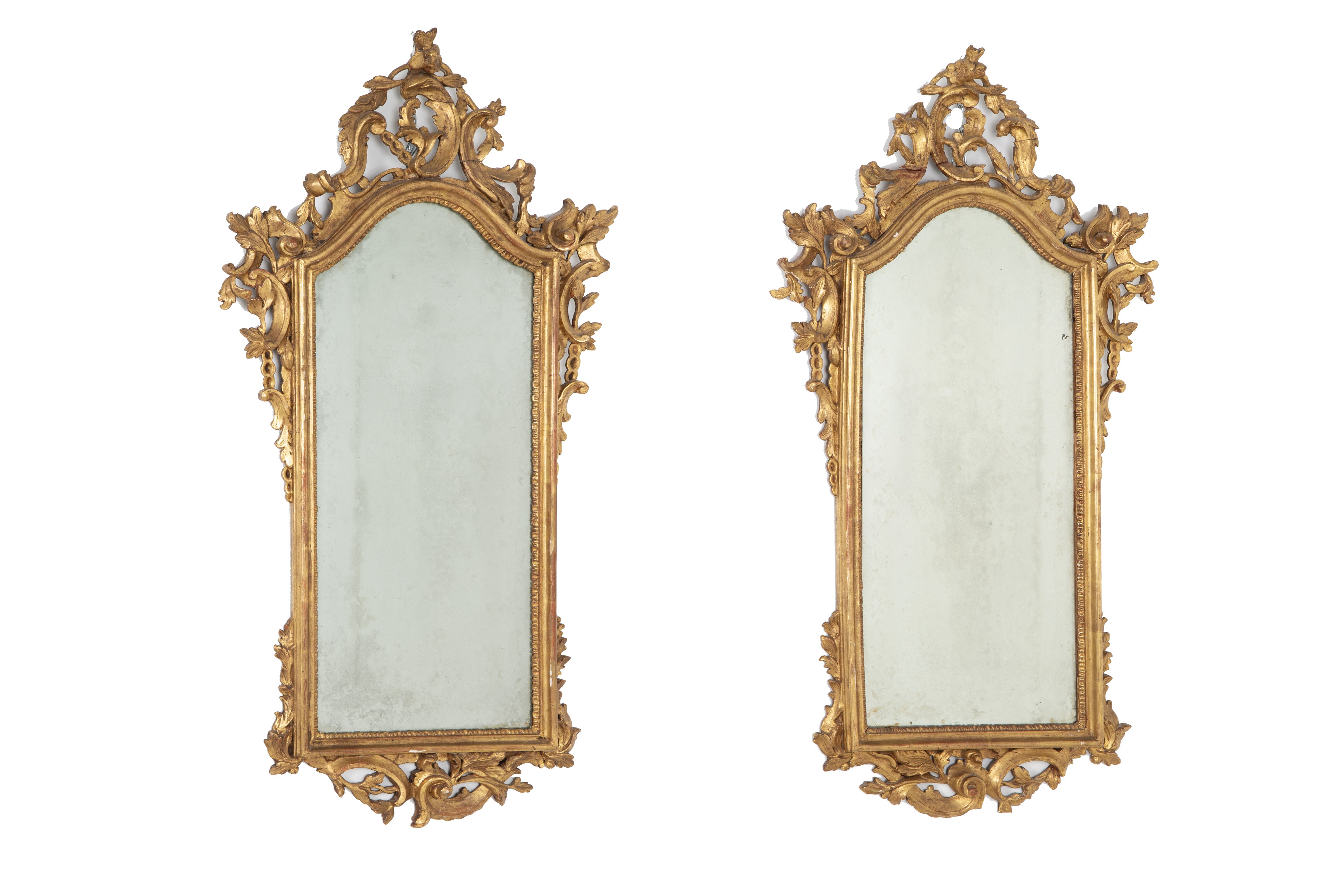 Coppia di specchiere al mercurio acidato con cornici in legno intagliato e dorato. Fine XIX secolo.