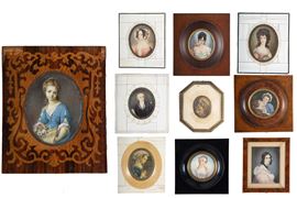 Dieci miniature in materiali vari e soggetti vari. Inizi XX secolo. In cornici.