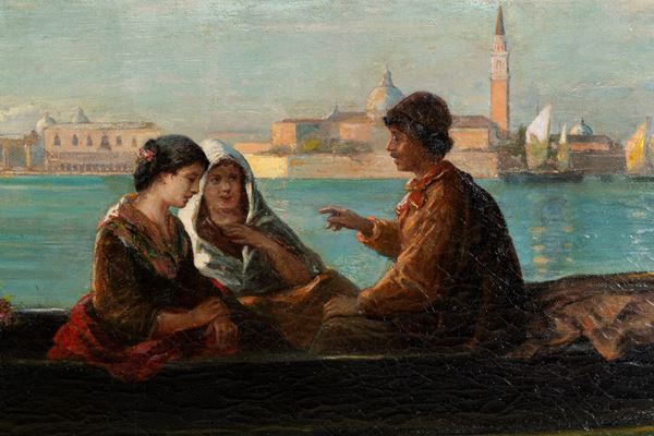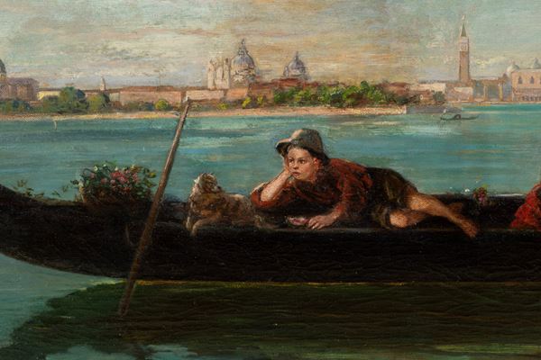 Dipinto olio su tela raffigurante "LAGUNA DI VENEZIA". XIX secolo. In cornice.