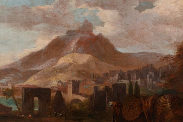 Dipinto "PAESAGGIO CON SCENE DI VITA"