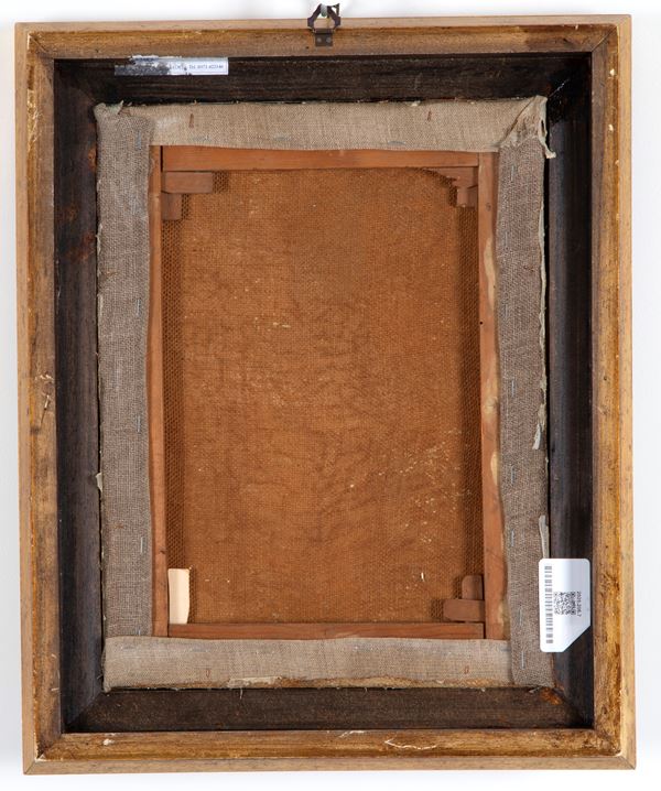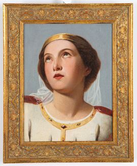 Dipinto olio su tela raffigurante "SANTA IN ESTASI". Fine XVIII. In cornice in legno intagliato e dorato. Lievi restauri. Già rintelato e rintelaiato.